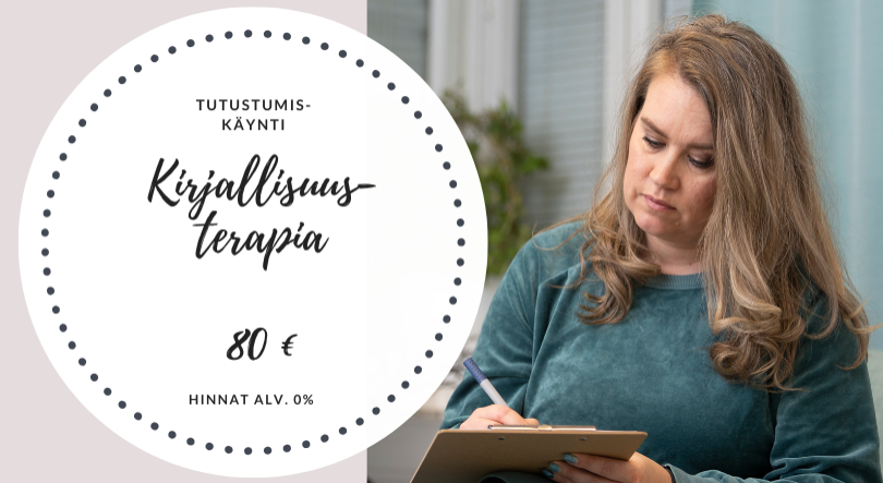 Tutustumiskäynti kirjallisuusterapiaan 80 €.